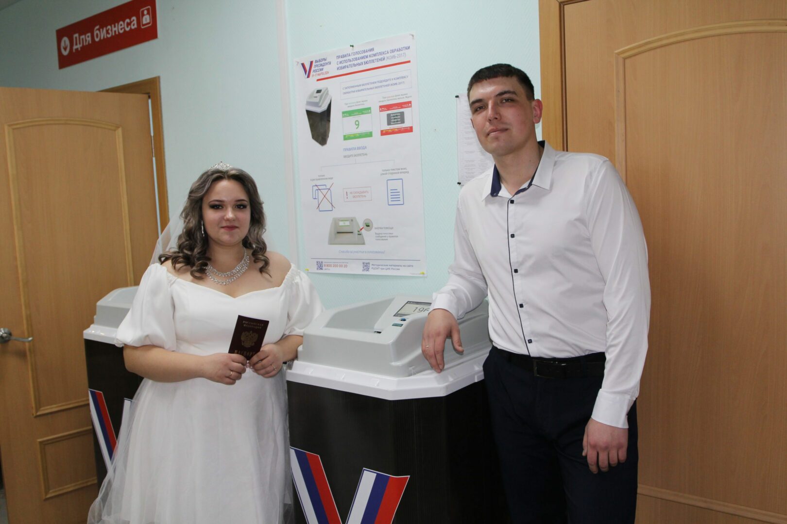 – Молодожены еще ни разу к нам не приходили в день свадьбы! Так приятно видеть молодых людей, которые в такой важный для них день не остались в стороне и приняли участие в выборах!.