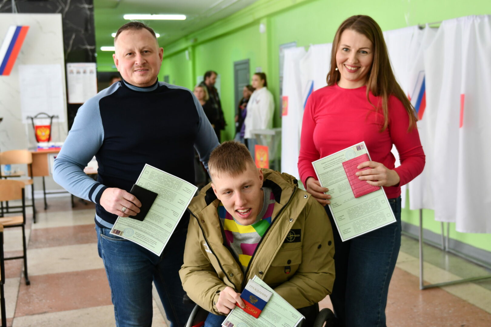 Молодой человек с ограниченными возможностями здоровья, но безграничным жизнелюбием и добрым сердцем проголосовал вместе с родителями. Для него, как отметила мама, день этот особенно важный, поскольку у Кирилла сегодня еще и день рождения.